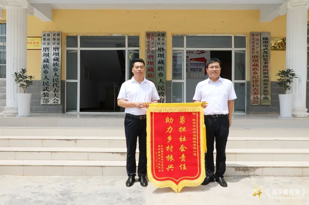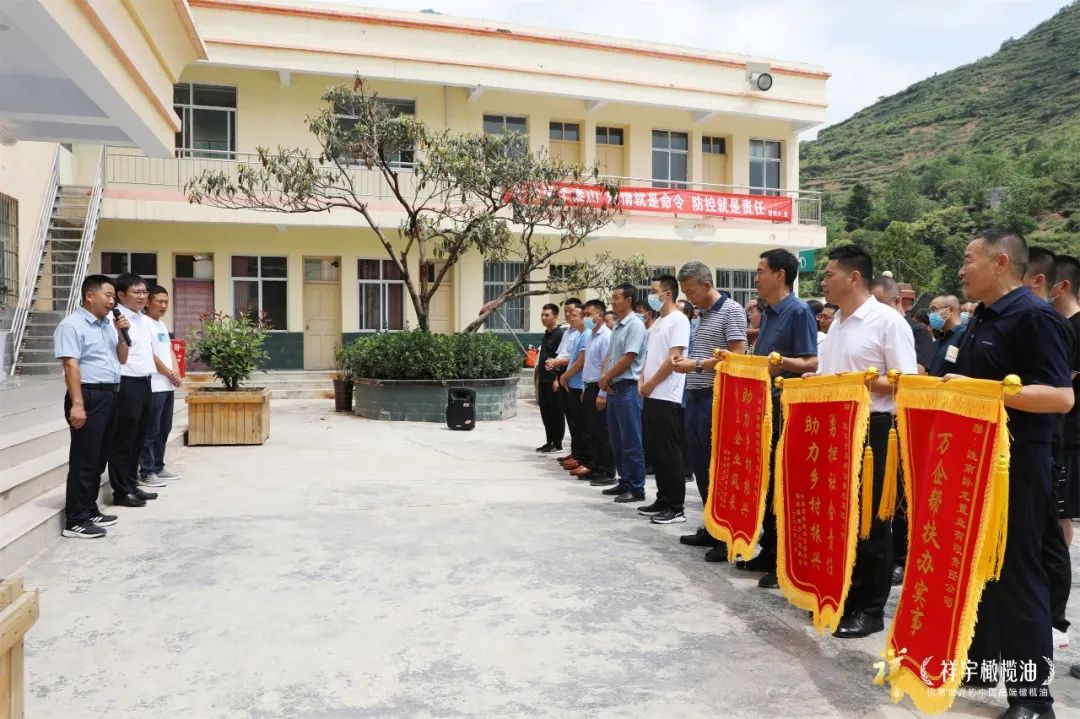 捐贈儀式結束后磨壩鄉(xiāng)政府向祥宇公司回贈了錦旗以表示感謝