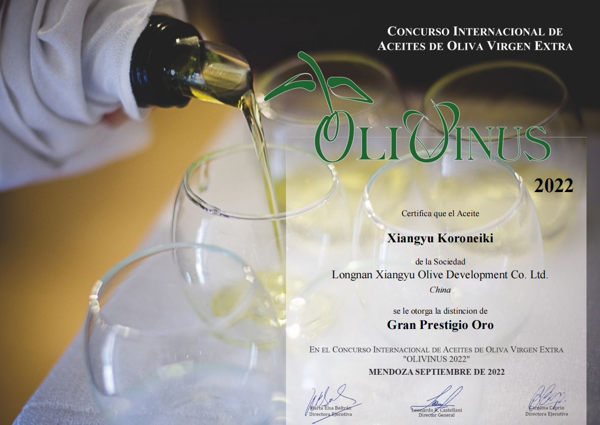 2022 OLIVINUS Xiangyu Koroneiki金獎(jiǎng)證書