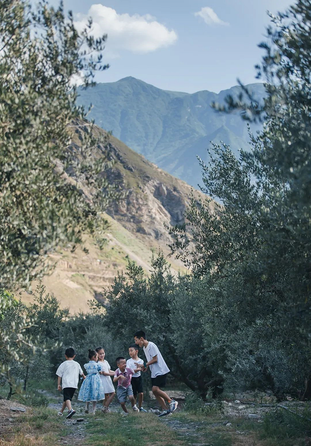 橄欖枝干成為孩童們嬉戲的依靠